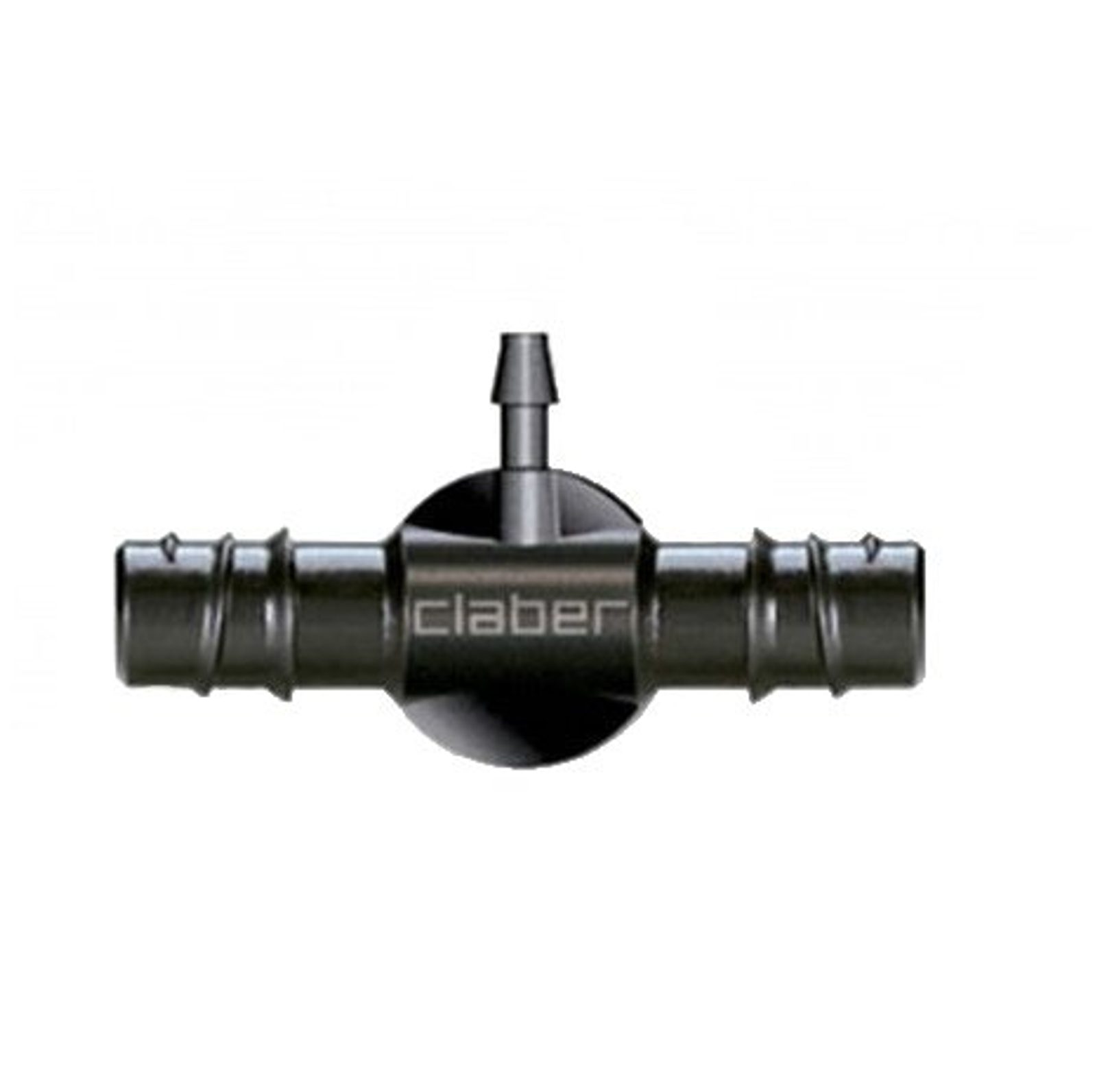 1/2"-1/4" T kus, vhodné pre kvapkovú závlahu Colibri od firmy Claber, umožňuje pripojenie napájacej hadice na zavlažovacie potrubie, používa sa na oddeľovanie častí prívodnej hadice 1/4" z hlavnej hadice 1/2", v balení 2 ks.