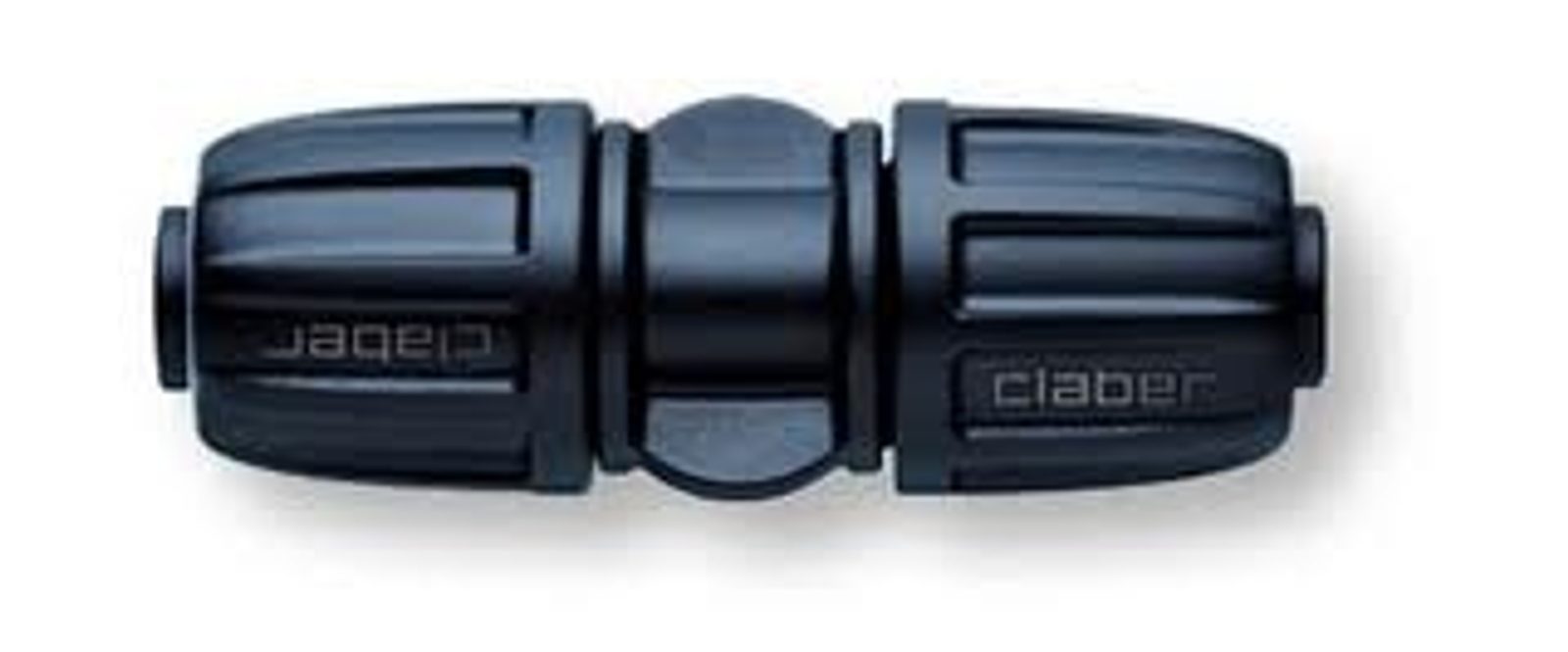 1/2" spojka Claber na hadice, umožňuje vytvárať systémy ľubovoľnej dĺžky, spájať dva a viac kusov hlavnej 1/2" hadice.