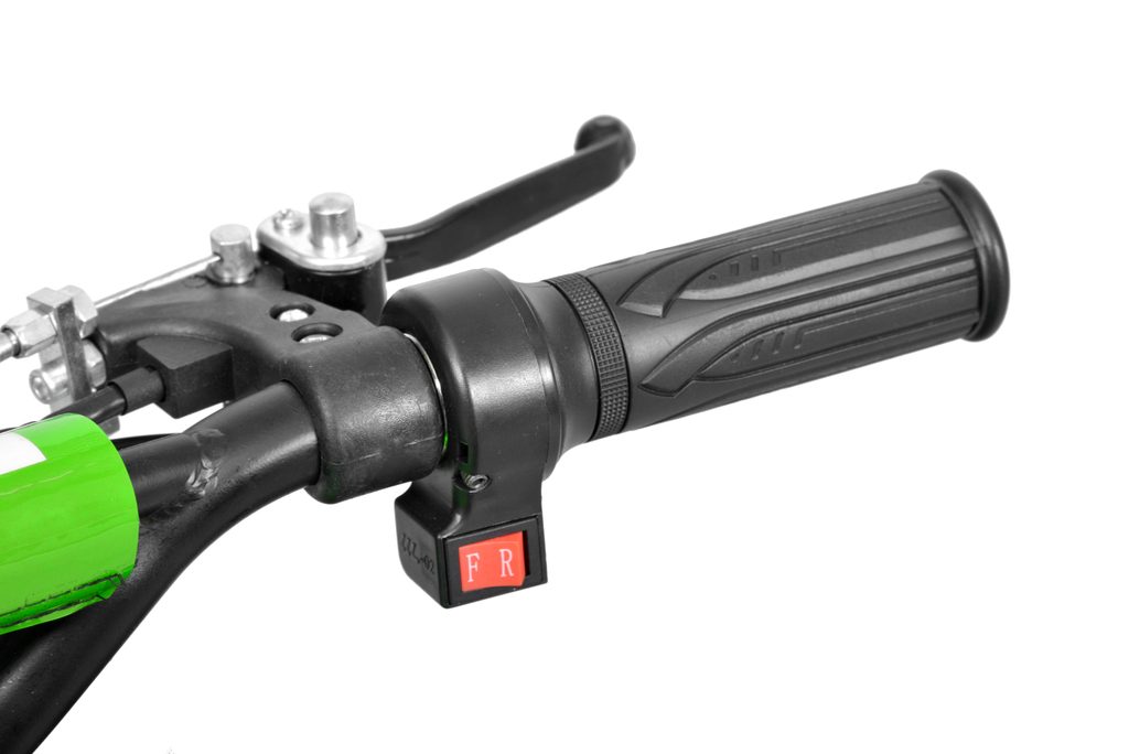 Rýchlosť štvorkolky sa ovláda klasicky otáčaním rukoväte na pravej strane riadidiel, podobne ako u motocykla. Smer pohybu vpred a vzad nastavíte pomocou prepínača, ktorý je tiež umiestnený na riadidlách. V miestach, kde pri motorových strojoch nájdete viečko nádrže, je umiestnená LED signalizácia zobrazujúci stav nabitia akumulátora. Nechýba ani svetlo a klaksón.