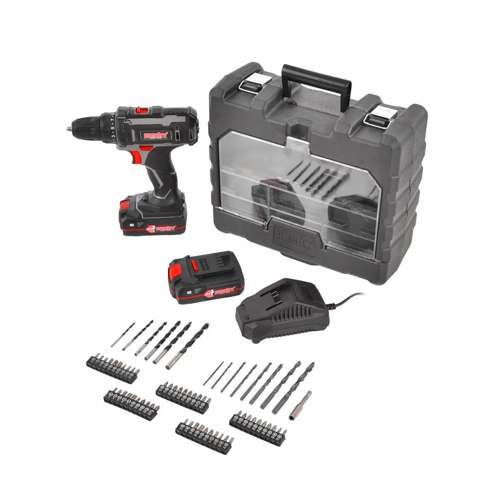 Nadštandardne vybavená vŕtačka HECHT 1248 dodávaná v praktickom kufri s bohatým príslušenstvom. Súčasťou sú hneď dva lítiové akumulátory 20 V / 2 Ah (40Wh). S dodávanou rýchlonabíjačkou je akumulátor nabitý za 1 hodinu, čo vám umožní pracovať prakticky nepretržite. Kufor ďalej obsahuje 65 ks vrtákov a bitov.