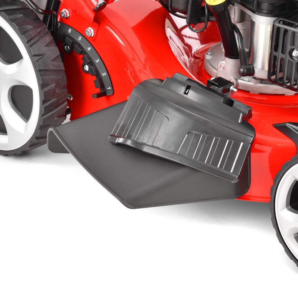 Akonáhle je páka pojazdu úplne stlačená, aktivuje sa zubová spojka. Dve ozubené kolesá sa pevne spoja, zabráni tým preklzovaniu a zaistí prenos vysokého krútiaceho momentu. To zaručí, že sa kosačka bude naďalej pohybovať a to aj pri jazde s plným košom trávy. - Ovládanie bez námahy