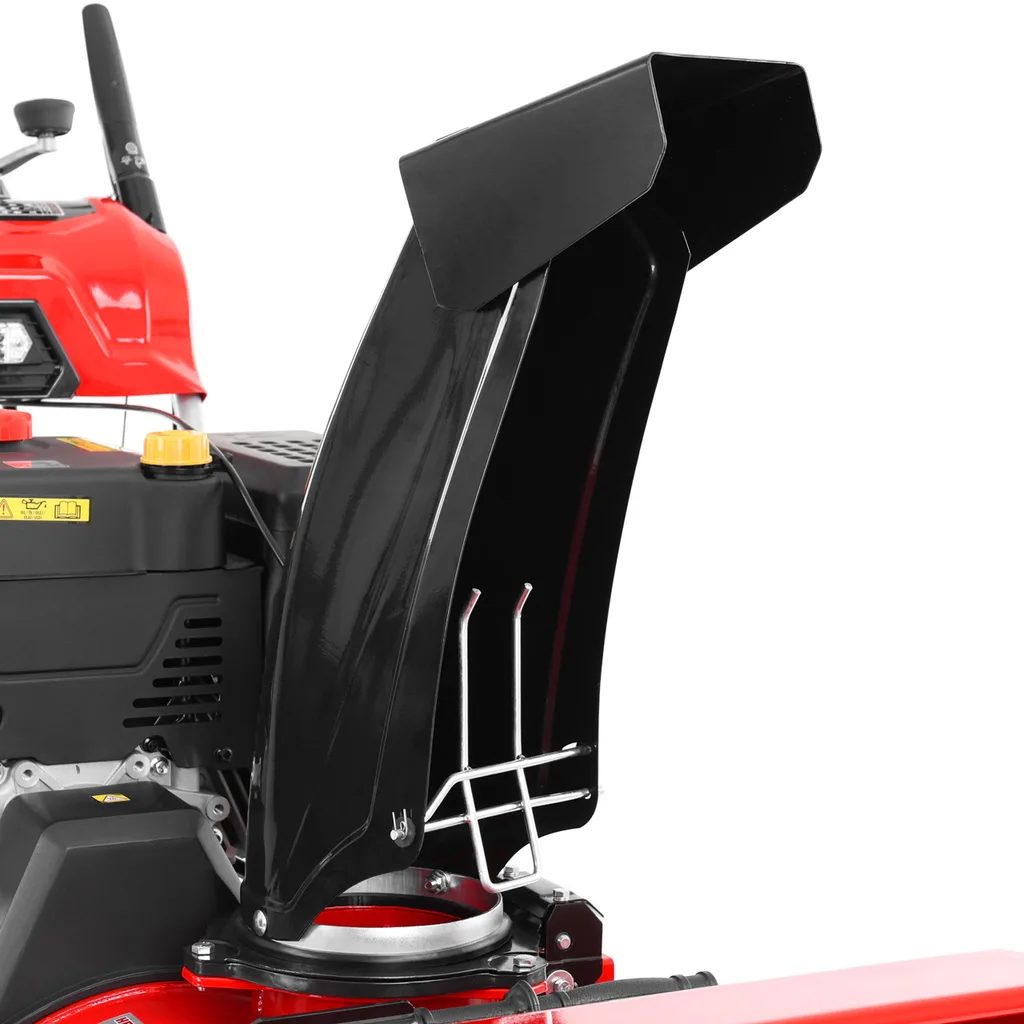 Veľký vyhadzovací komínAby mohla fréza spoľahlivo pracovať aj za tých najdrsnejších podmienok bez neustáleho upchávania, je vybavená veľkým a širokým, oceľovým komínom. Aj vďaka konštrukcii komína môže byť sneh odhodený až na vzdialenosť 15 m. Oceľová konštrukcia takisto zvyšuje bezpečnosť, ak by nože nabrali v snehu ukrytý predmet. Spodná časť komína je vnútri vybavená bezpečnostnou mriežkou. Tá je pohyblivá, tak že nevadí pri vyhadzovaní snehu, zároveň však zabráni vniknutiu ruky k nožom druhého stupňa, ak by obsluha nedodržala pokyny pre bezpečné použitie. Komín je úplne ovládaný pomocou prvkov na hlavnom paneli frézy. Otáčať možno v rozsahu 190°. Rovnako tak je možné priamo na paneli obsluhy diaľkovo ovládať vrchný deflektor, ktorý riadi dĺžku vyhadzovania. |