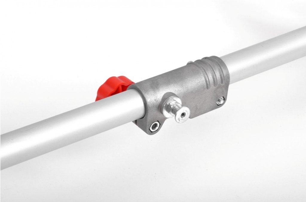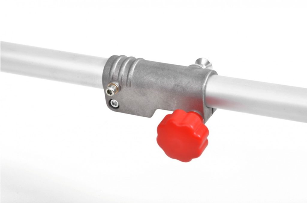 Elektrický krovinorez s deliteľným hriadeľom. Príkon 1400 W. Záber 42 cm. Hmotnosť 5 kg.