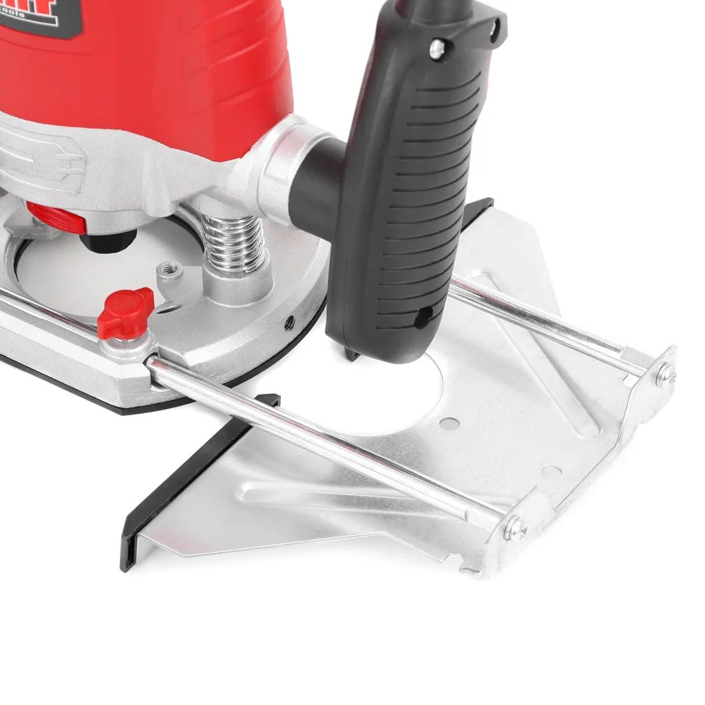 Elektrická horná frézka 230V / 50 Hz. Príkon 1200 W. Nastavenie rýchlosti. Otáčky bez zaťaženia 11000-30000 ot./min. Rezná hĺbka 55 mm, klieštinový otvor 6/8 mm. Prívodný kábel 1,85 m, 2x vodiaca lišta, pravítko, adaptér na odsávanie prachu. Klieštinové skľučovadlo (predmontované), strediaci kolík.
