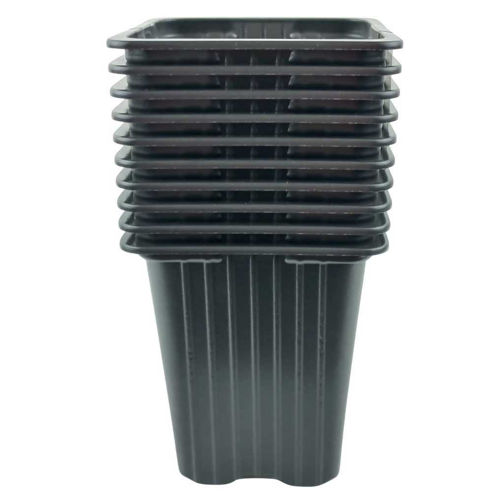 Hranatý plastový čierny kontajner mäkkej kvality je určený predovšetkým na pestovanie sadeníc rastlín. Balené po 10-tich kusoch.