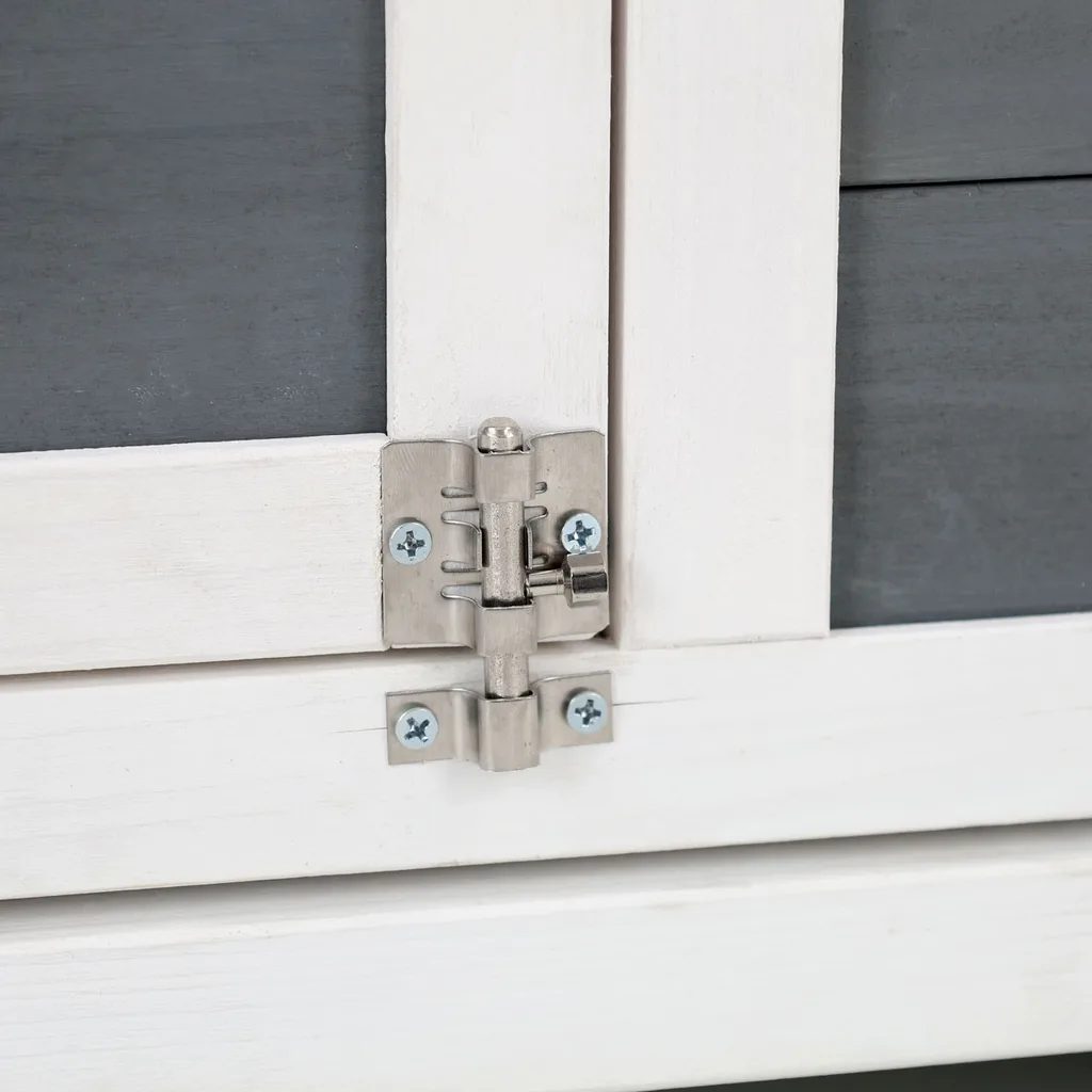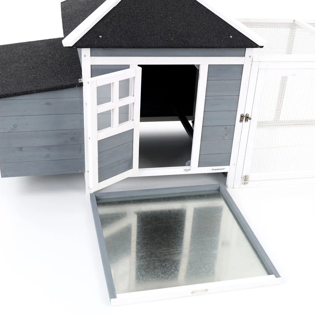 Strecha pokrytá asfaltovými šindľami. Hrúbka dreva 20 mm. Vyrobené z odolného jedľového dreva. Rozmery 195 x 73 x 98 cm. Vonkajší výbeh.