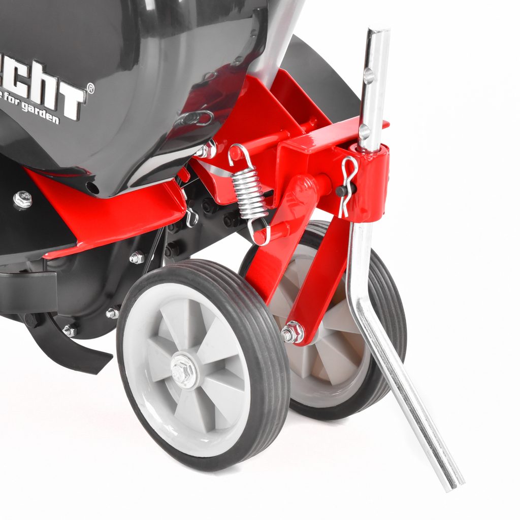 Stroj je vybavený sklopnými pojazdovými kolesami umožňujúcimi jednoduché premiestnenie. Zadná nastaviteľná radlička - ostroha slúži ako brzda, ktorá nielen znižuje fyzickú náročnosť obsluhy, ale zároveň zvyšuje kvalitu oslabenia štruktúry pôdy. Oceľové riadidlá dávajú obsluhe dokonalú kontrolu nad strojom. Vďaka oceľovej konštrukcii má stroj dlhú životnosť.