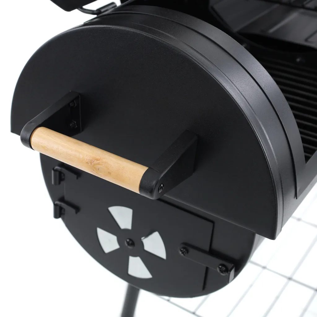 Gril je zhotovený z oceľového plechu a rúrkových profilov, ošetrený je kvalitnou čiernou žiaruvzdornou farbou. Madlá sú drevené, preto sa nikdy nepopálite.