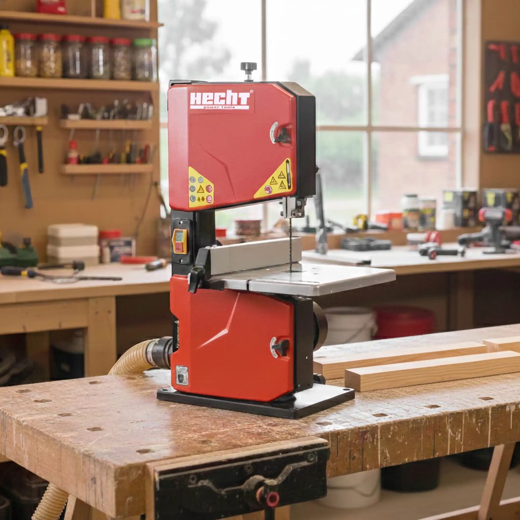 Praktická stolová pásová píla pre rezanie mäkkého i tvrdého dreva, laminátu alebo drevovláknitých dosiek. Pre presné rezanie je vybavená paralelným dorazom s vačkovou rýchloaretáciou. Stôl je možné plynule naklápať v rozsahu 0° - 45°.