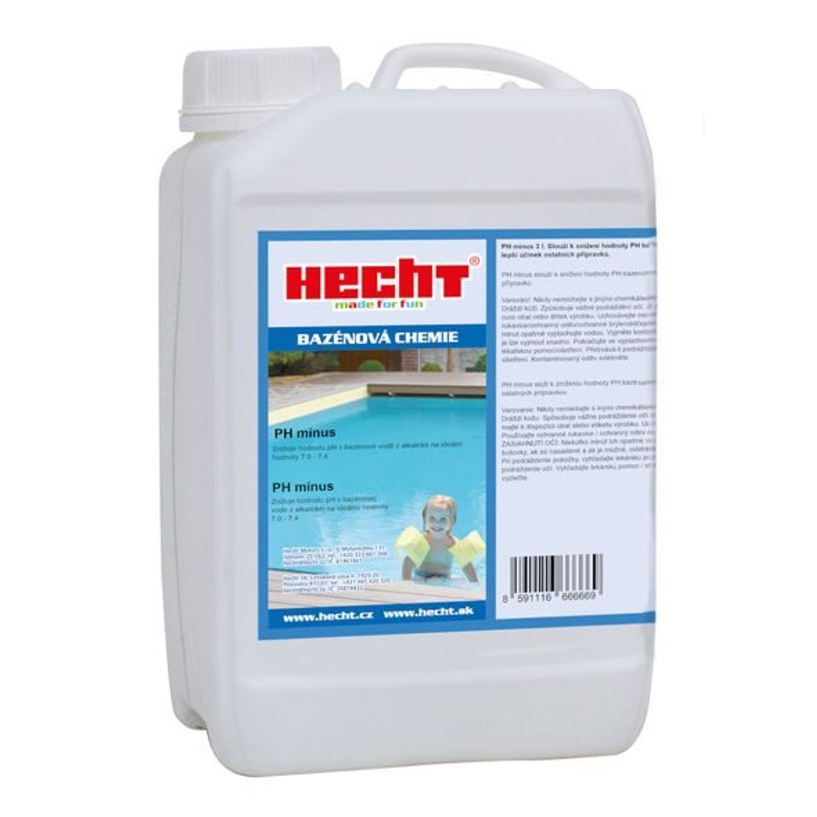 PH mínus 3 l. Slúži k zníženiu hodnoty PH bazénovej vody a tým je lepší účinok ostatných prípravkov. Optimálna hodnota pH je 7-7,4.