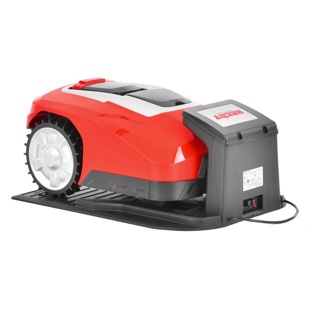 - Automatické dobíjanie – pokiaľ kosačka zistí nízky stav energie v batérii, automaticky sa vráti do nabíjacej stanice
