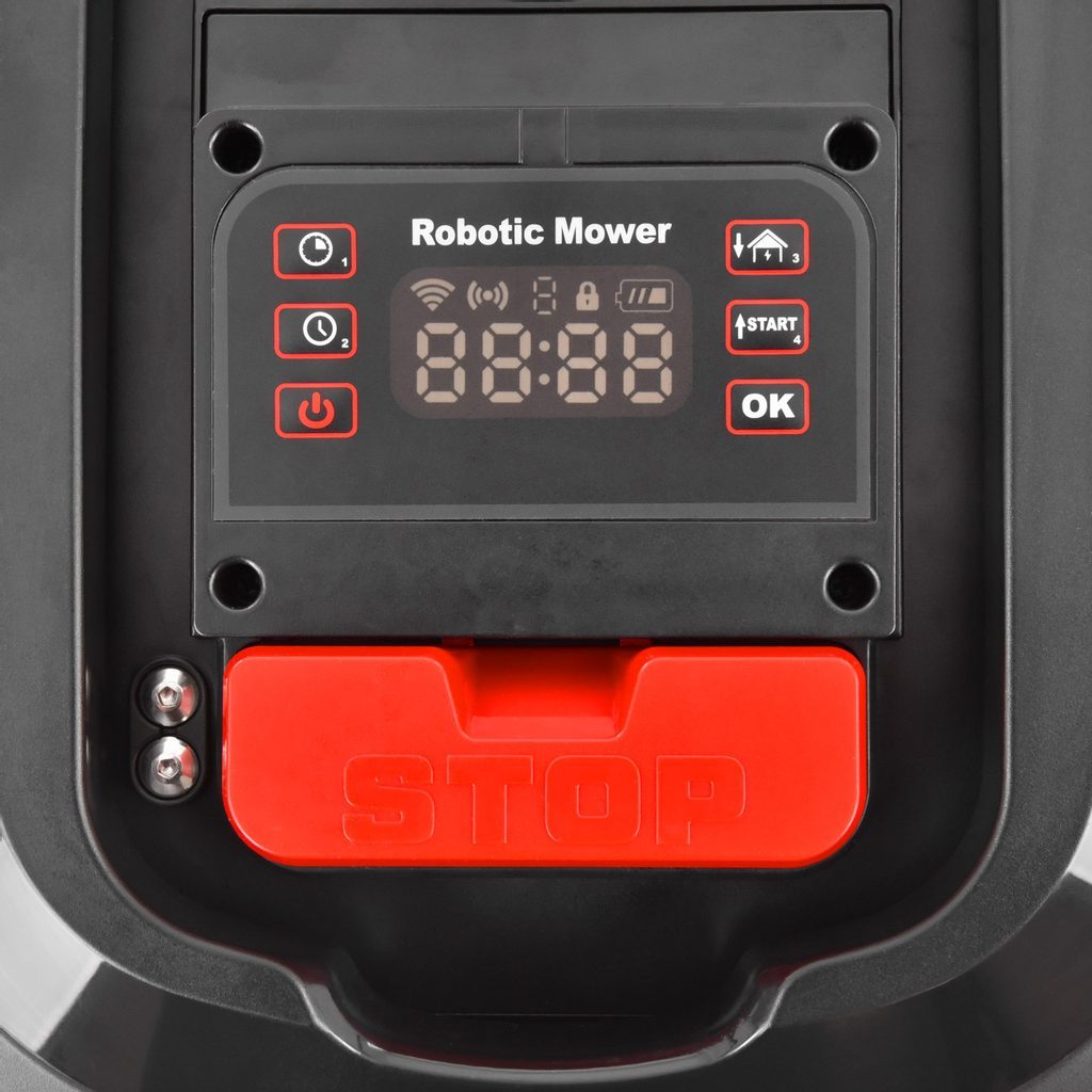 Proti odcudzeniu je kosačka chránená PIN kódom. Bez jeho znalosti nemožno kosačku spustiť, preto je pre zlodeja kosačka nepoužiteľná. Úplne ukrytá pod kosačkou rotuje hlava s trojicou nožov, ktoré by po zdvihnutí kosačky alebo jej prevrátení mohli byť nebezpečné. Preto je stroj vybavený čidlami, ktoré zaistia, že sa nože pri zdvihnutí kosačky okamžite zastavia. Pre ďalšie nepredvídané situácie je kosačka na vrchnom kryte vybavená veľkým tlačidlom, ktorým ju možno taktiež kedykoľvek okamžite zastaviť. Výšku kosenia je možné nastaviť od 20 do 60 mm.