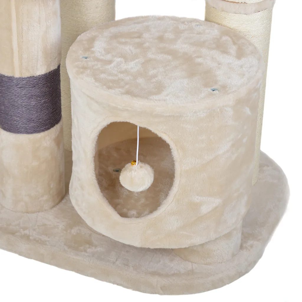 Škrabadlo a odpočívadlo pre mačky Prominent SIMBA B v béžovej farbe. Zhotovené z plyšu 400 g/m2 a prírodného sisalu 4 mm. Priemer nôh 145 mm. Rozmery (VxŠxH) 100 x 65 x 55 cm