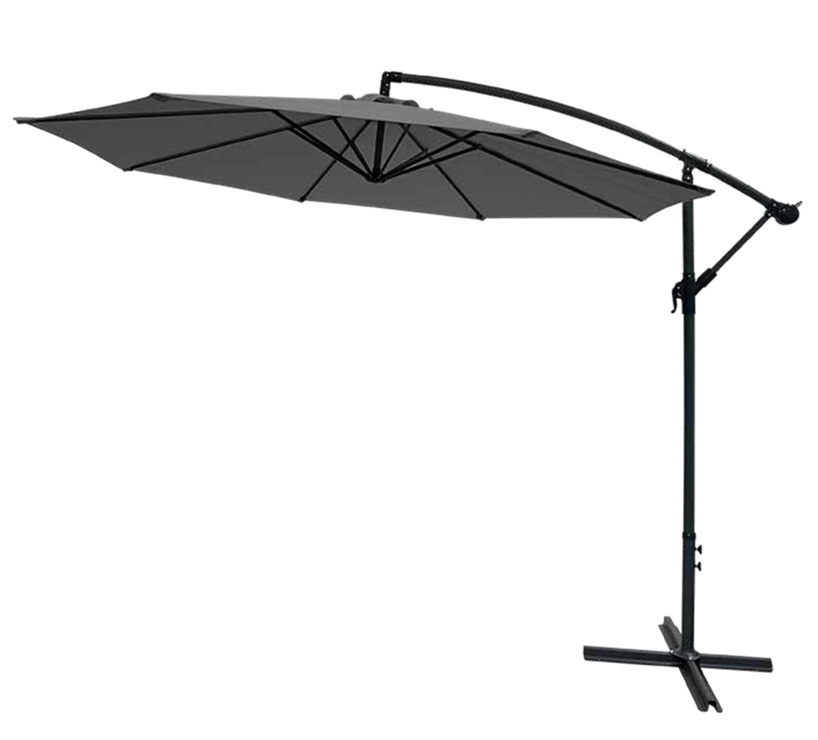 Hliníkový slnečník s priemerom 3 m s priemerom tyče v základni 48 mm a 8 hliníkovými priečnikmi 12 x 18 mm a krížovou základňou. Jednoduché otváranie a zatváranie kľukou. Materiál poťahu polyester 180g/m2. Slnečník je nutné vhodným spôsobom ukotviť, aby nemohlo dôjsť k jeho vyvráteniu vetrom.